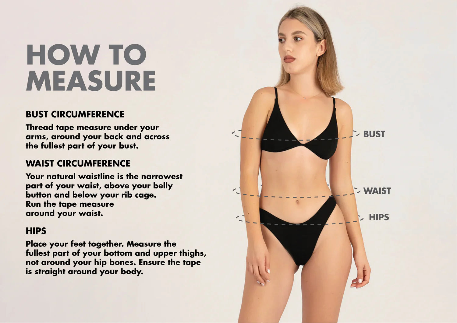 Item runs true to size chart and is cut to suit our size chart. If you are in between sizes, we do suggest sizing up for the bottoms & sizing down for the bra.